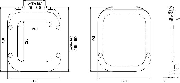- Schanierabstand: 55 - 210 mm